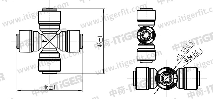 中荷2分十字型四通 1/4纯水机净水器快接头配件 1808-A 整包散卖