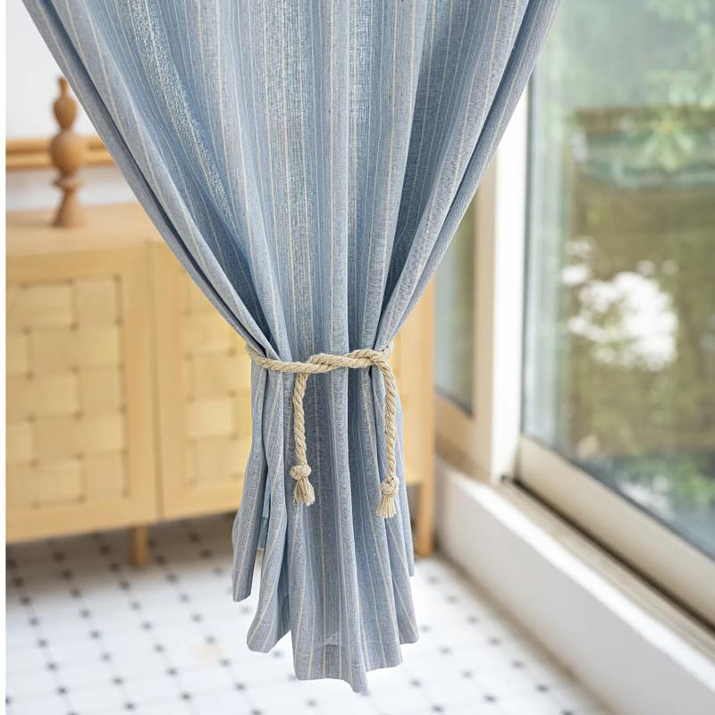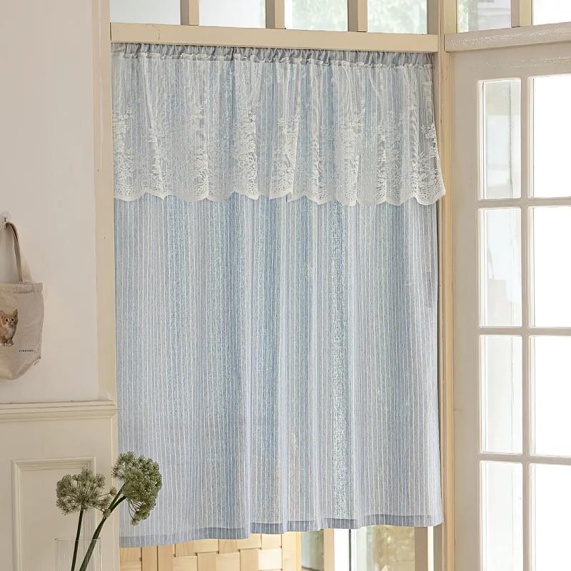 简约蓝色条纹门帘玄关半帘厨房短门帘隐私帘免打孔隔断窗窗帘柜子