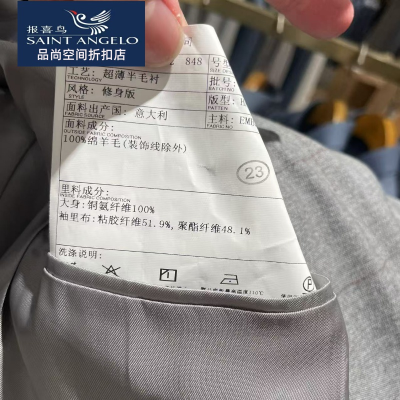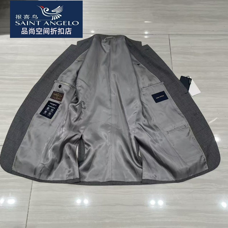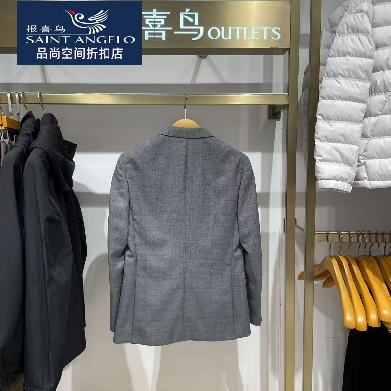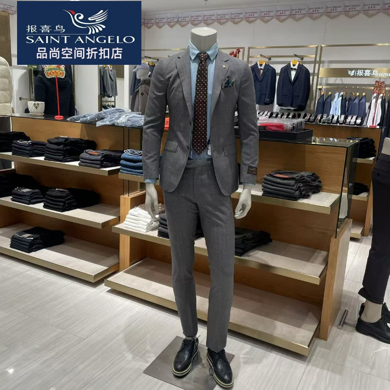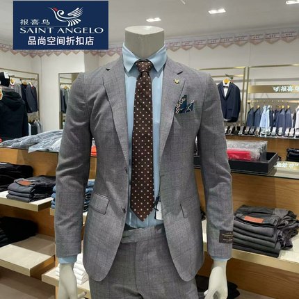 报喜鸟正品春季灰色格纹商务纯羊毛西服套装男西装正装意大利面料