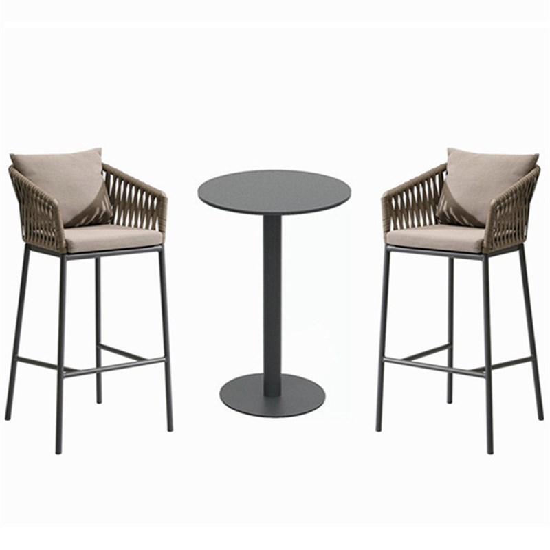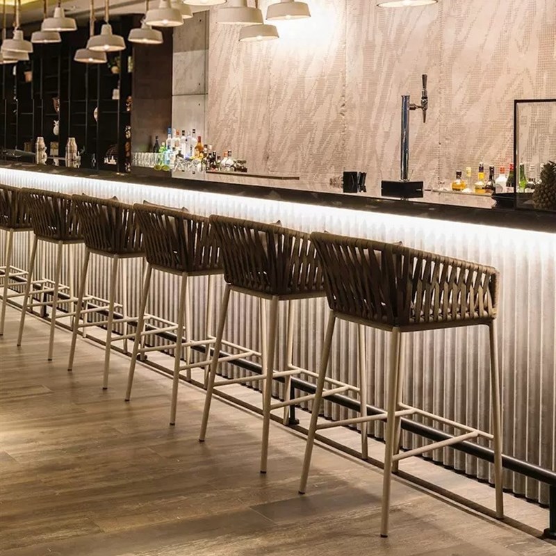 极速北欧藤编靠背酒吧椅铝合金户外高脚创意藤艺S吧台椅吧凳咖啡