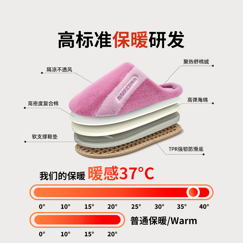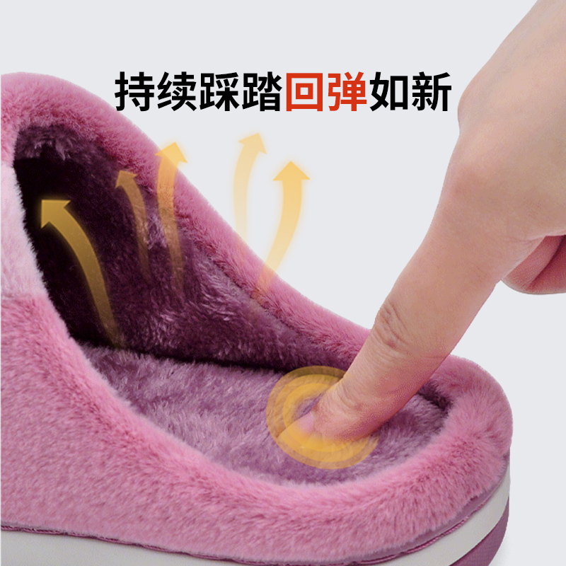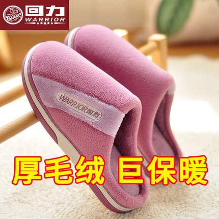 回力加绒保暖棉拖鞋女款冬天家居室内厚底防滑女士毛毛拖鞋球冬季