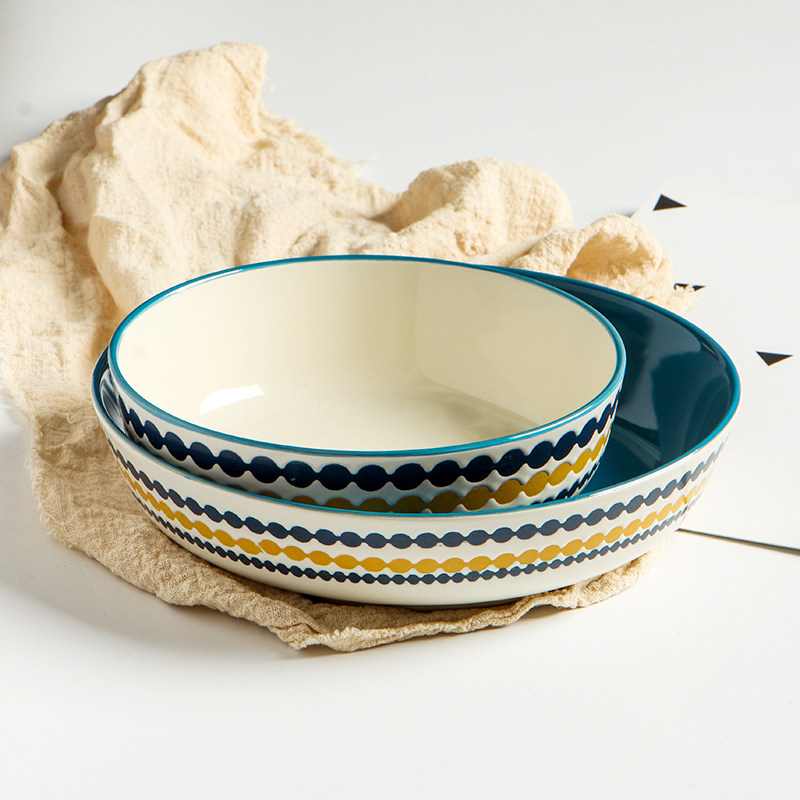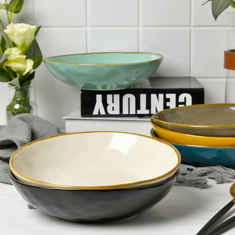 创意陶瓷家用高级酒店深盘汤盘鱼盘子水果盘北欧个性纯色西餐餐具