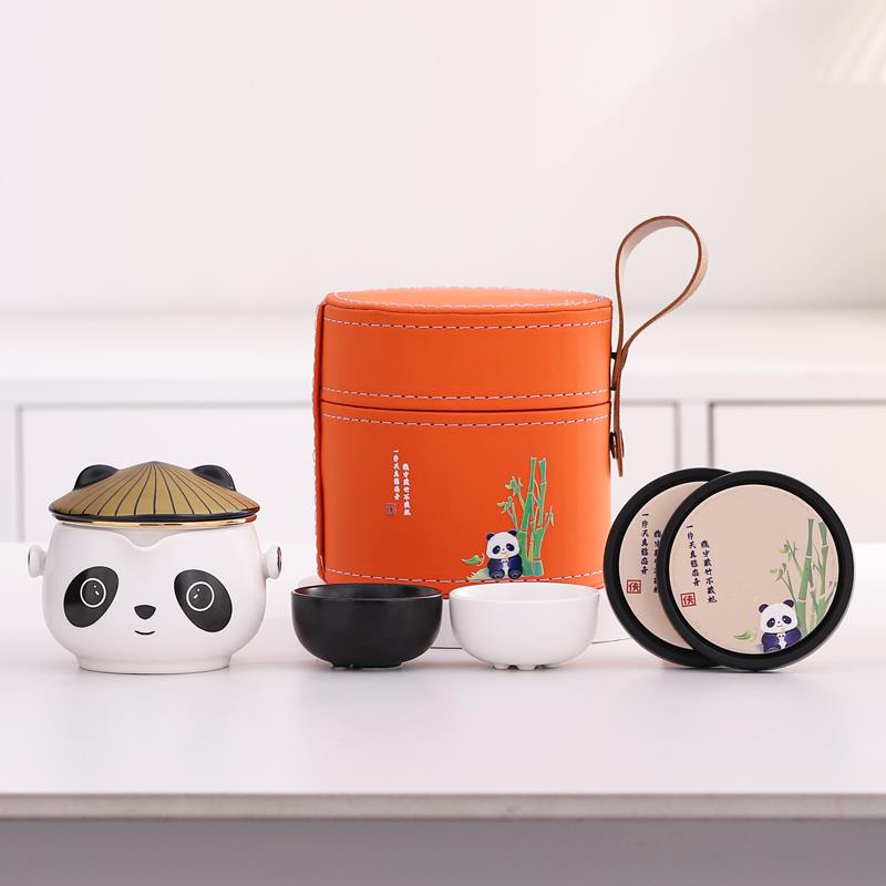 熊猫旅行茶具套装户外便携式快客杯一壶二杯茶具礼盒功夫泡茶壶
