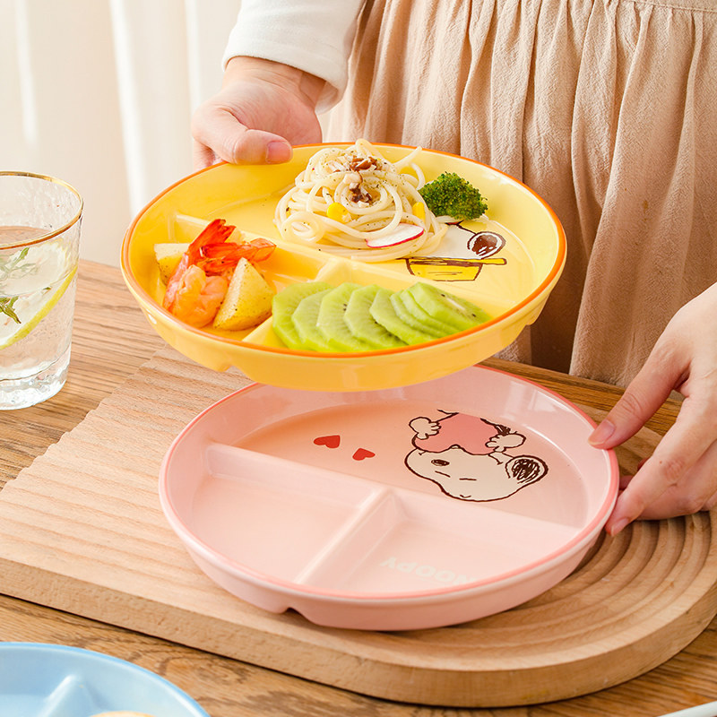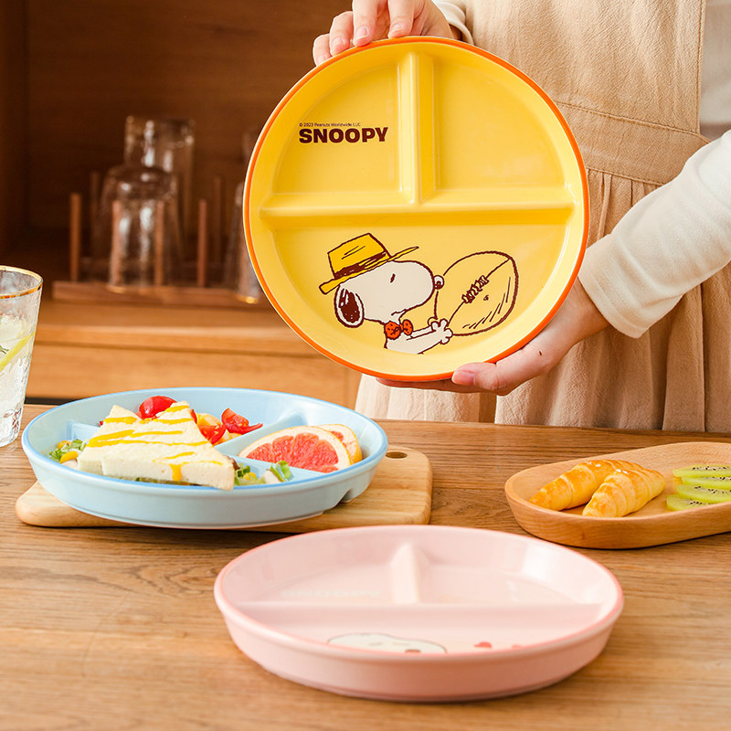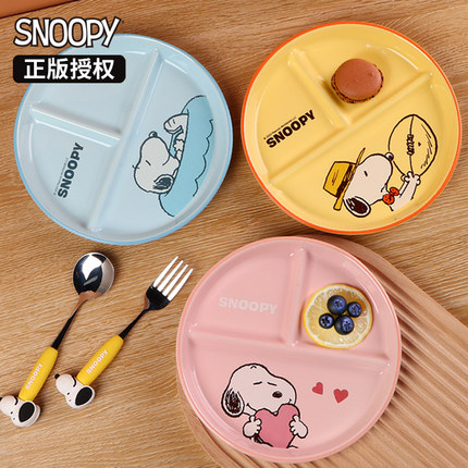 史努比分格餐盘月子专用高颜值餐具陶瓷儿童早餐盘211餐盘碟子