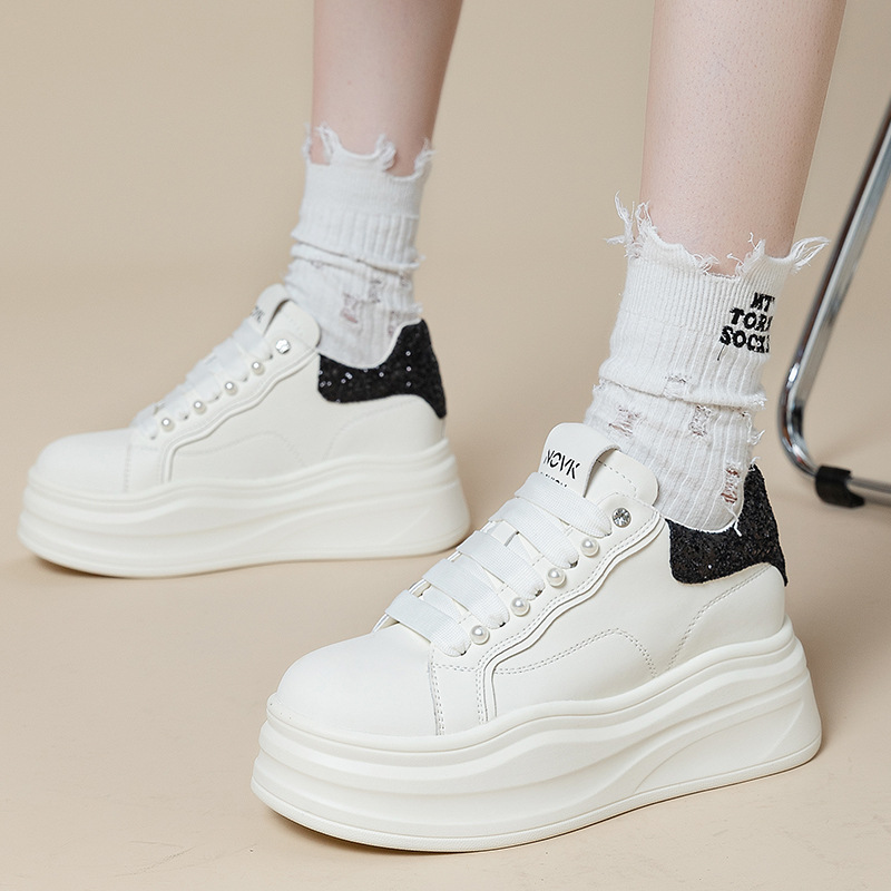 女鞋2025年秋款百搭女式内增高单鞋真皮厚底休闲小白鞋子女新款
