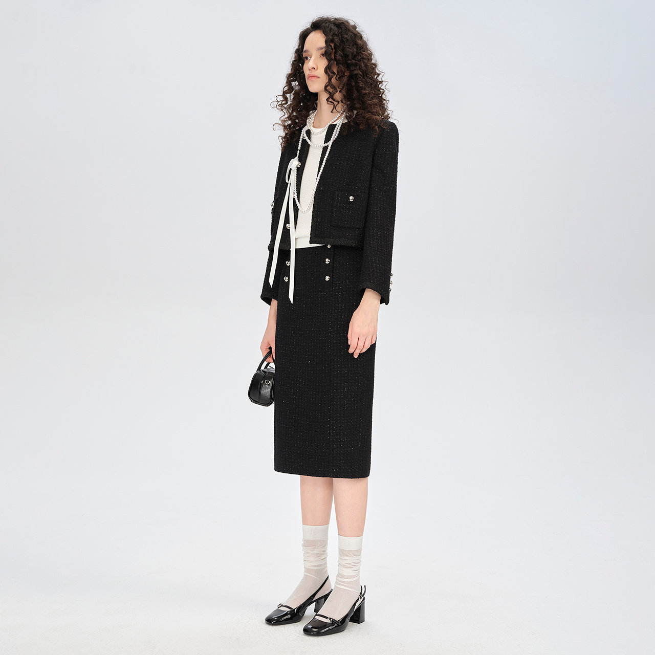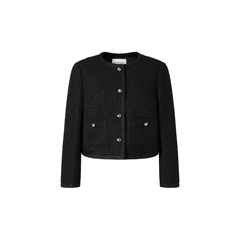 商场同款 摩萨克2025秋新款圆领H型小香风粗花呢箱型长袖外套女