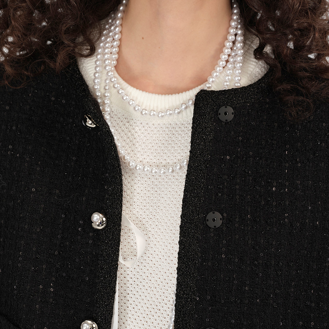 摩萨克小香风粗花呢箱型长袖外套