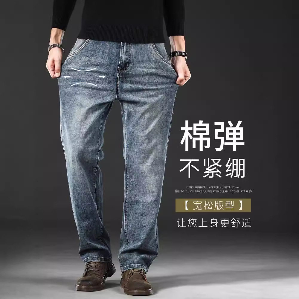 高端宽松直筒牛仔裤男士春秋裤子中年弹力2024新款休闲裤夏季薄款