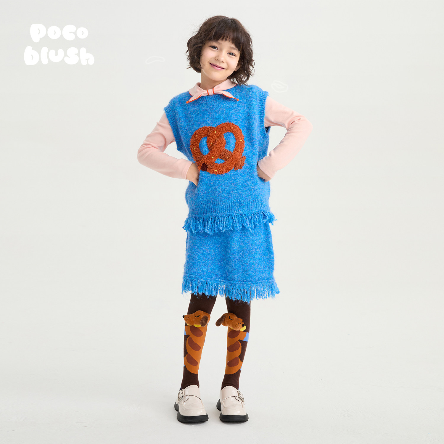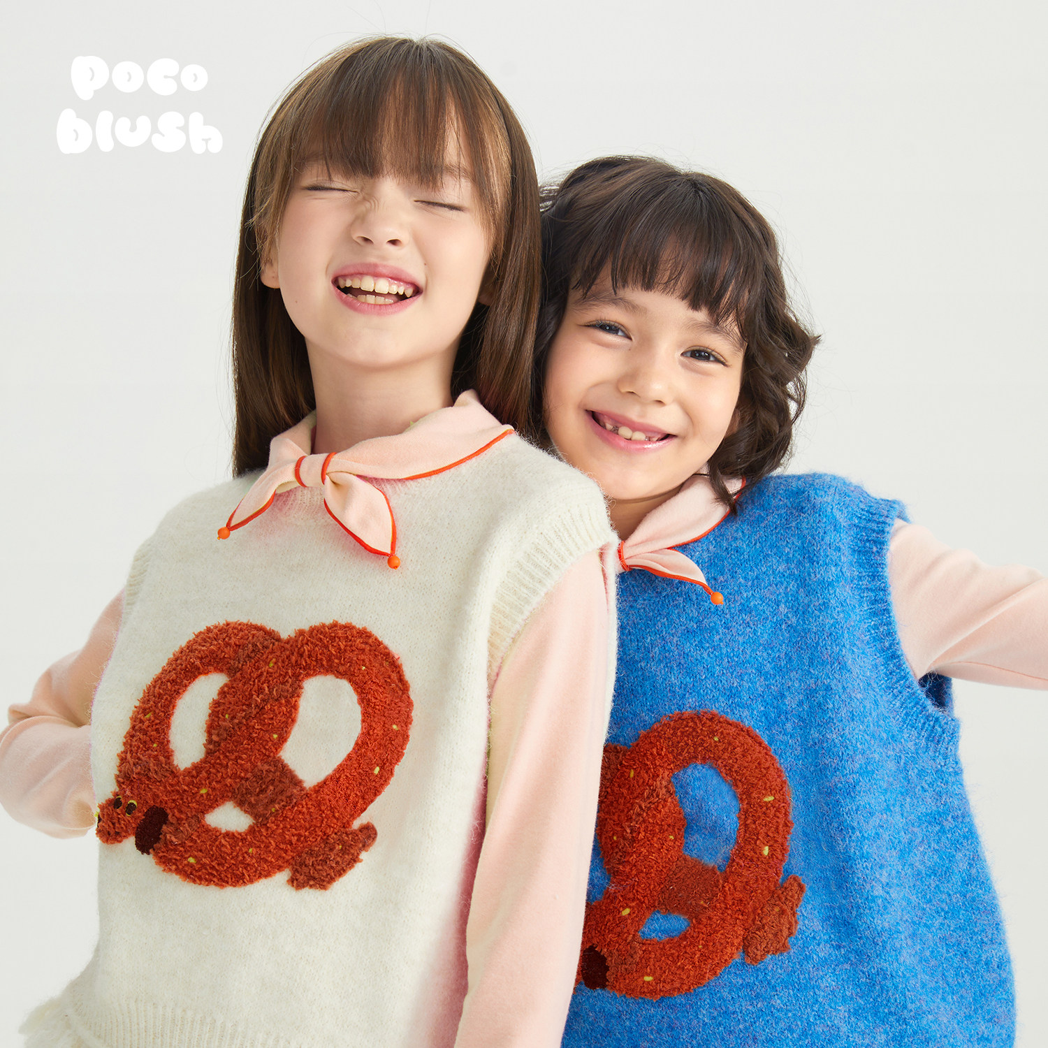 pocoblush【扭结面包小狗】毛织马甲女童秋冬小女孩毛衣背心上衣