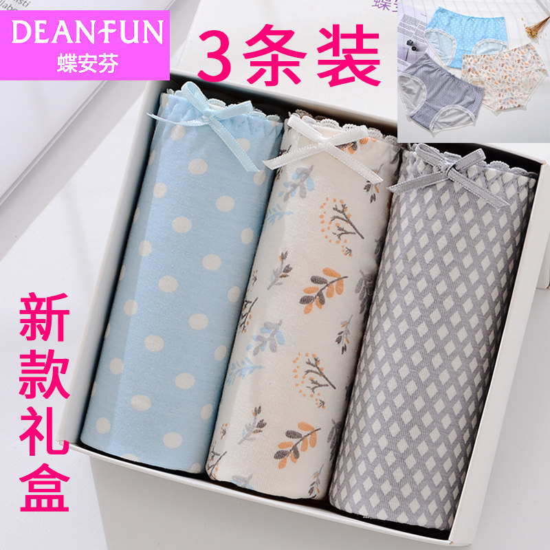 内裤女蝶安芬盒装品牌莫代尔中腰性感条纹优雅舒适大码mm内裤女生