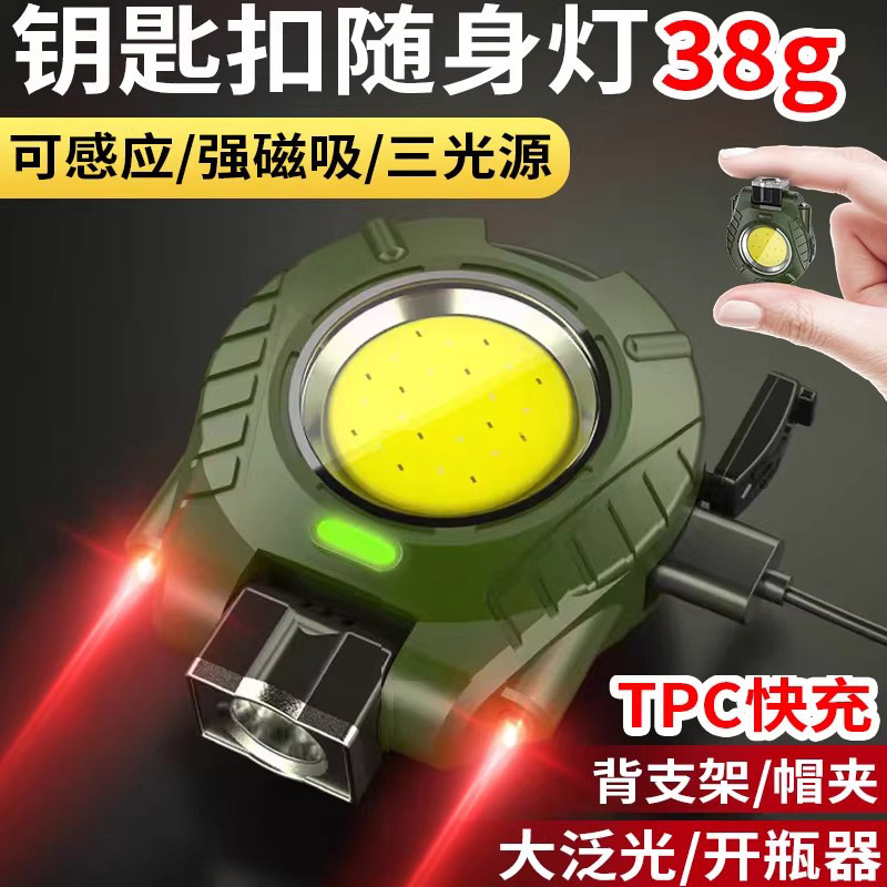 钥匙扣灯手电筒强光充电户外多功能随身迷你超亮工作灯小便携led