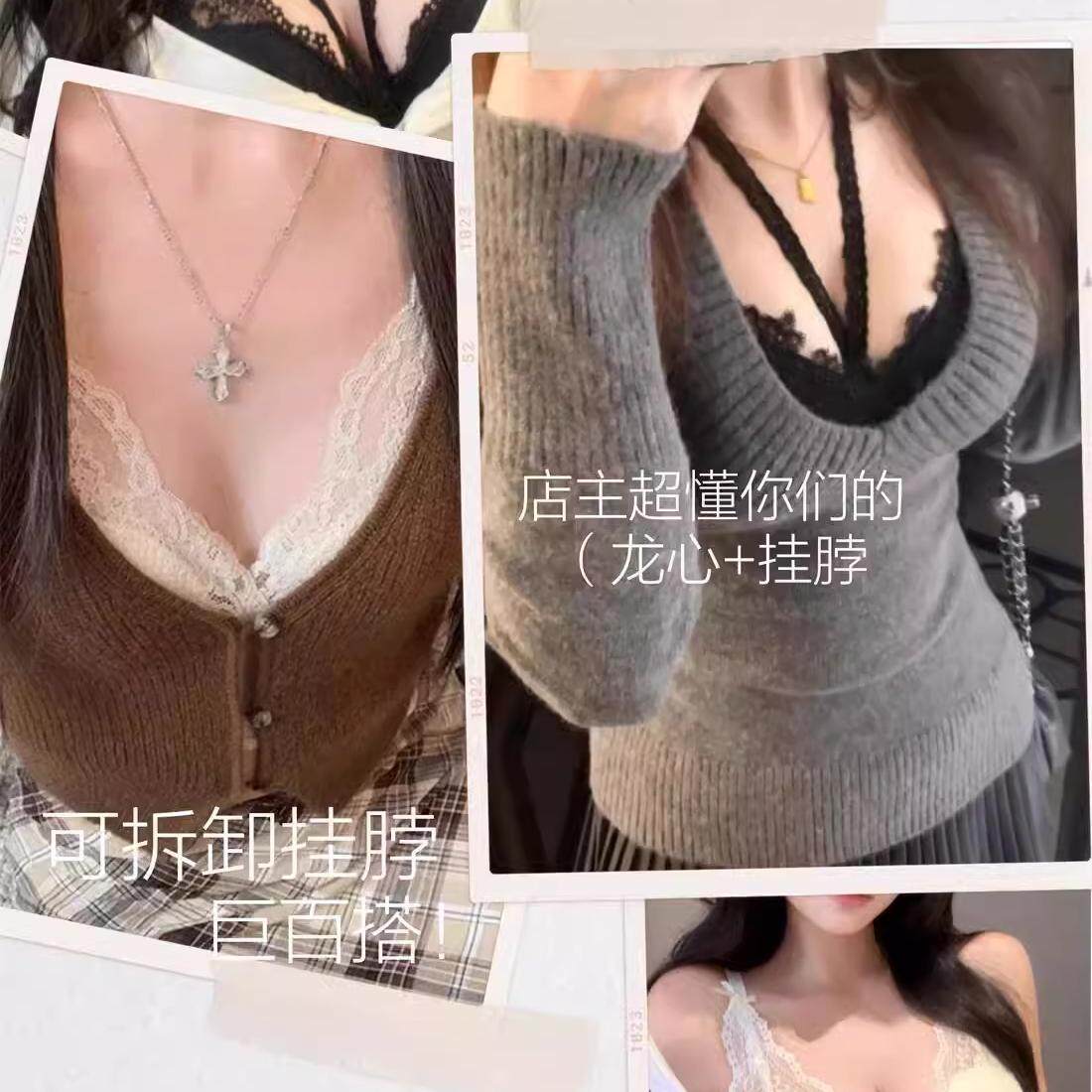 龙心升级2.0 小胸聚拢内衣女无钢圈挂脖纯欲法式蕾丝性感内搭文胸