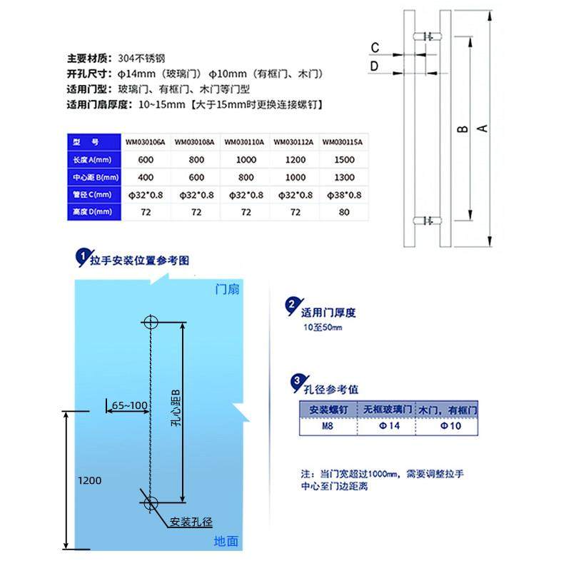 坚朗拉手304不锈钢玻璃门有框无框门木门把手工程圆管扶手WM0301