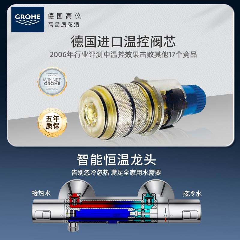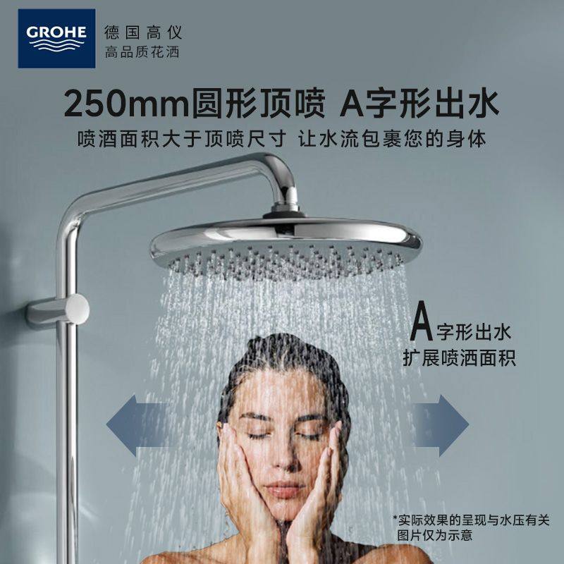 高仪进口德国卫浴250大方顶恒温防烫淋浴花洒套装A型淋浴浴缸两用
