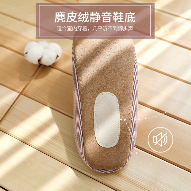 日式室内居家男女软底拖鞋家居布底木地板大码无声防滑月子棉拖鞋
