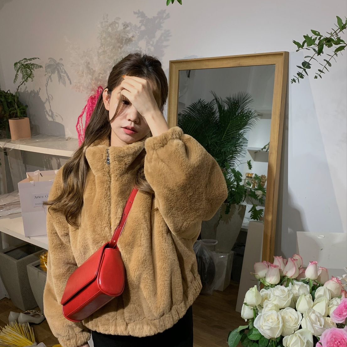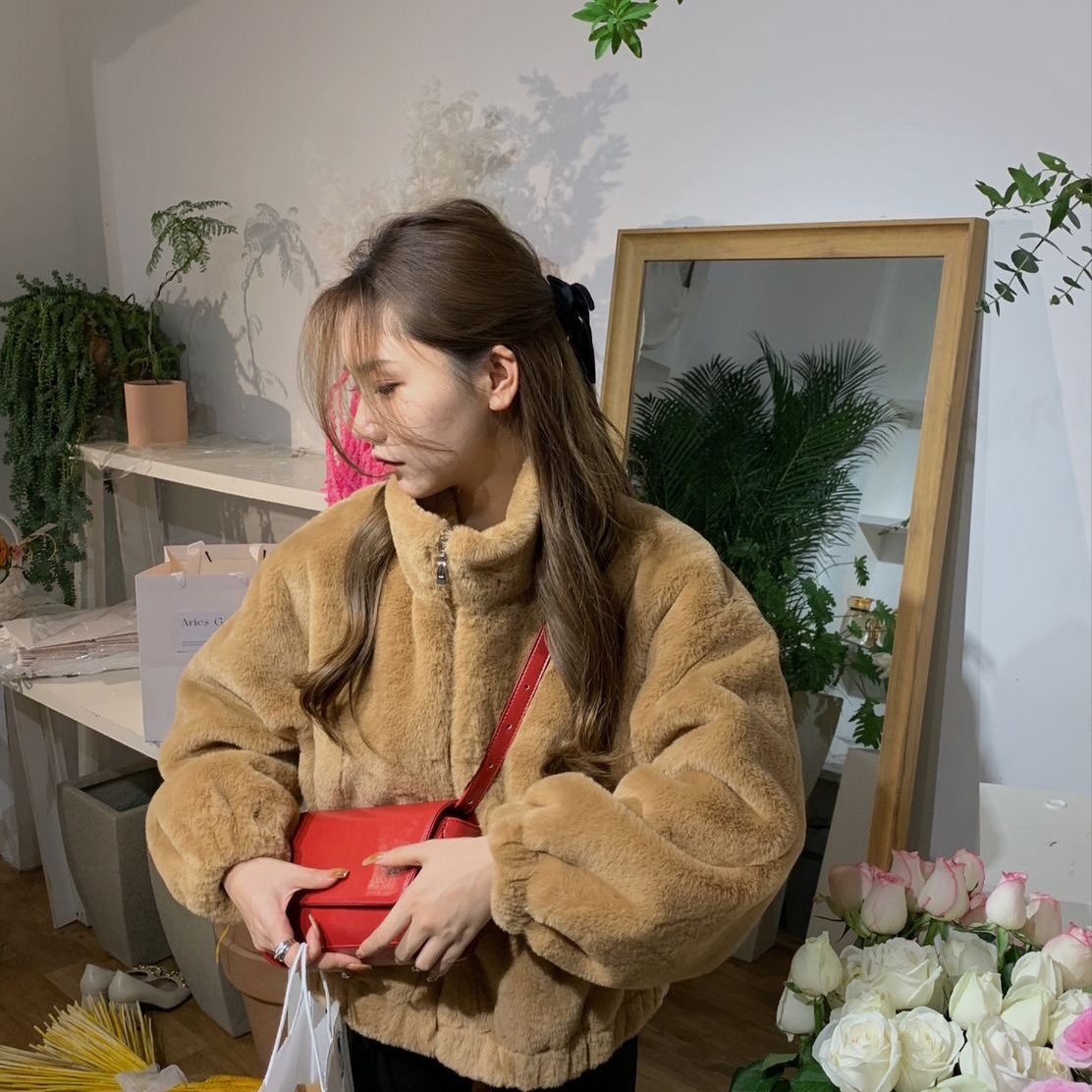 诺诺冬上新高级感立领仿皮草羊羔毛小棕熊加厚保暖短外套45563
