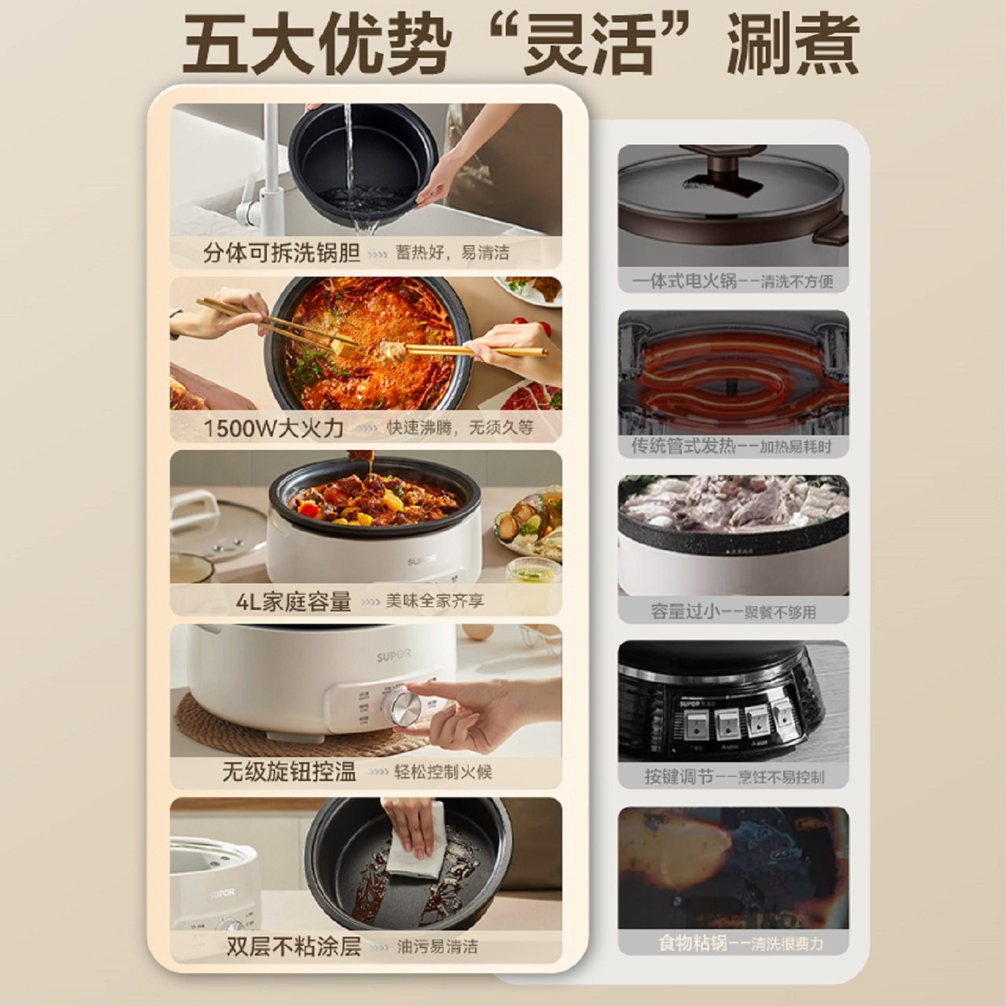 苏泊尔电火锅家用一体式电炒锅煎焖炖煮涮分体式电热锅智能多功能
