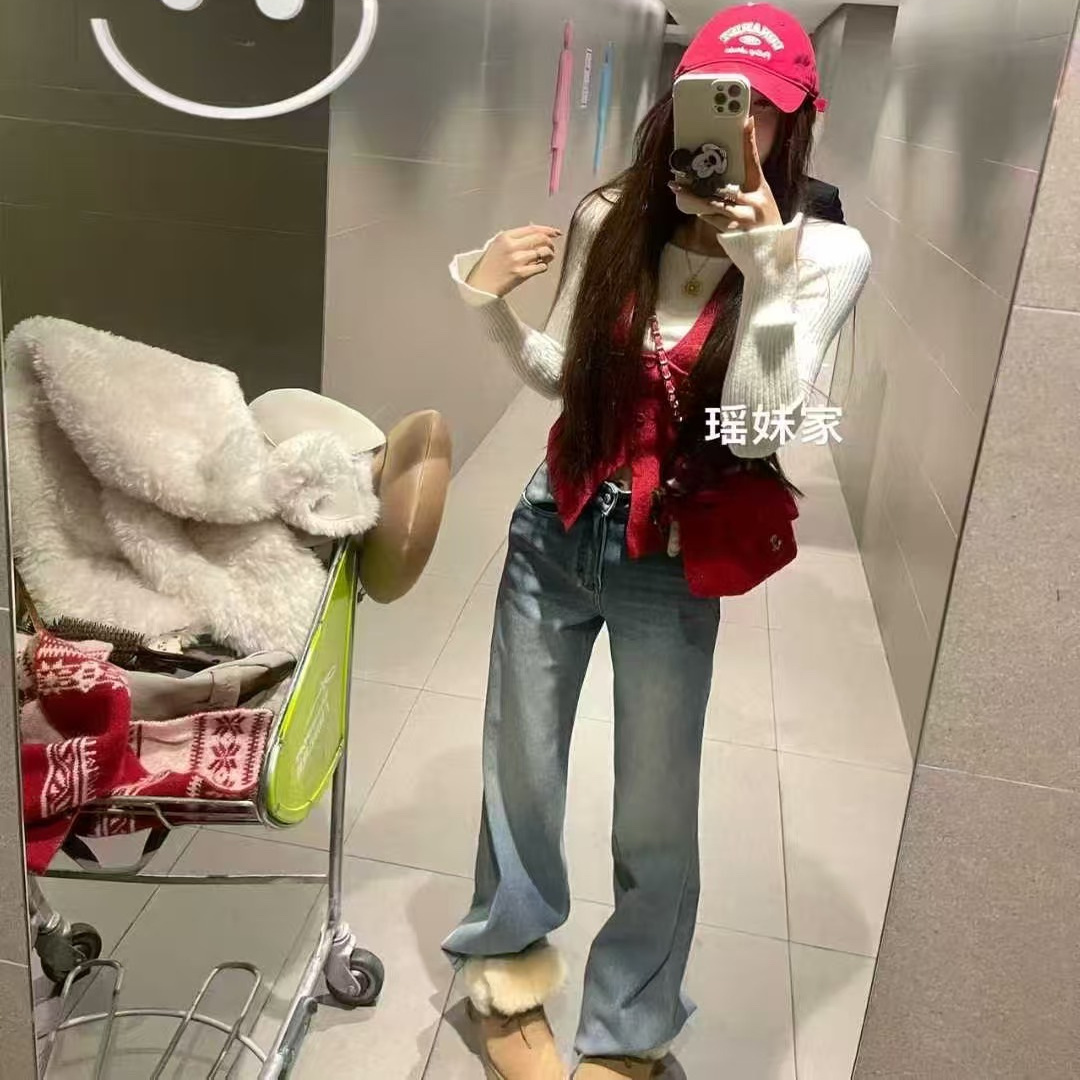 现货~韩版WANGHONG东大门秋冬加厚撞色拼接假两件针织衫毛衣瑶妹