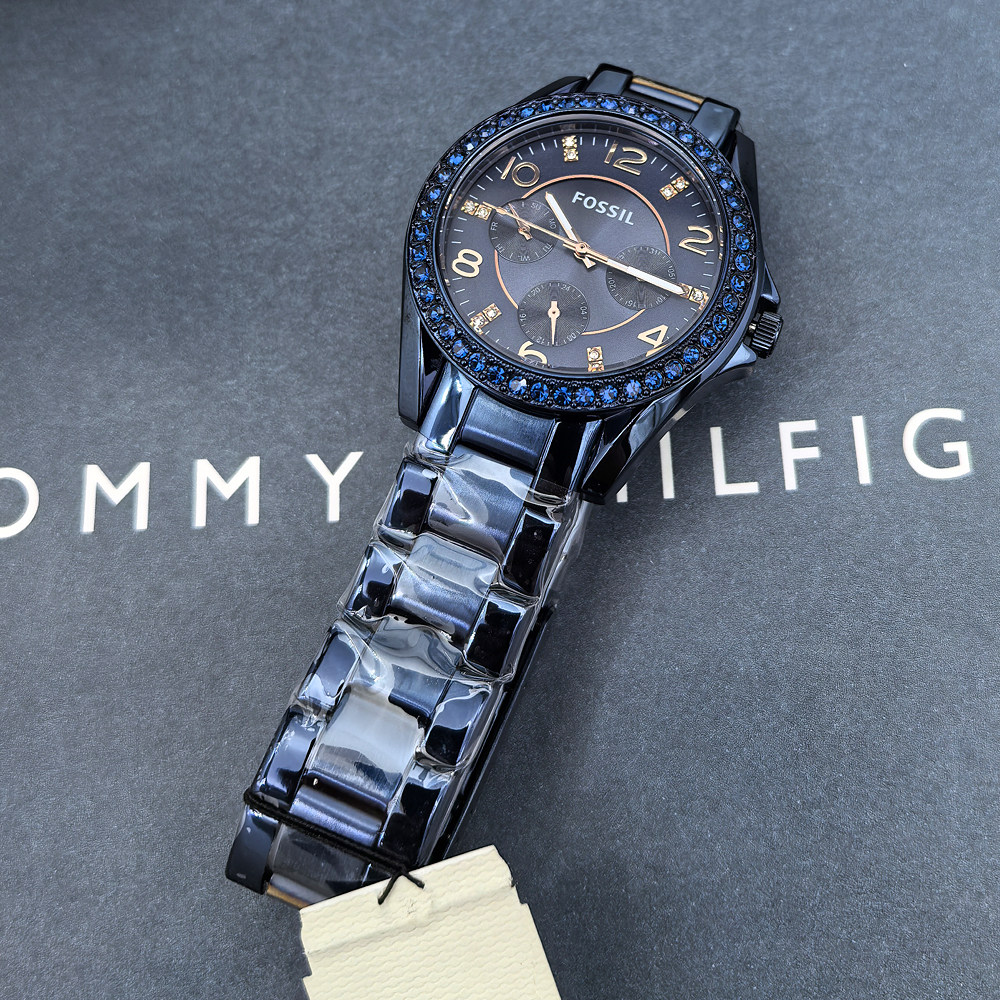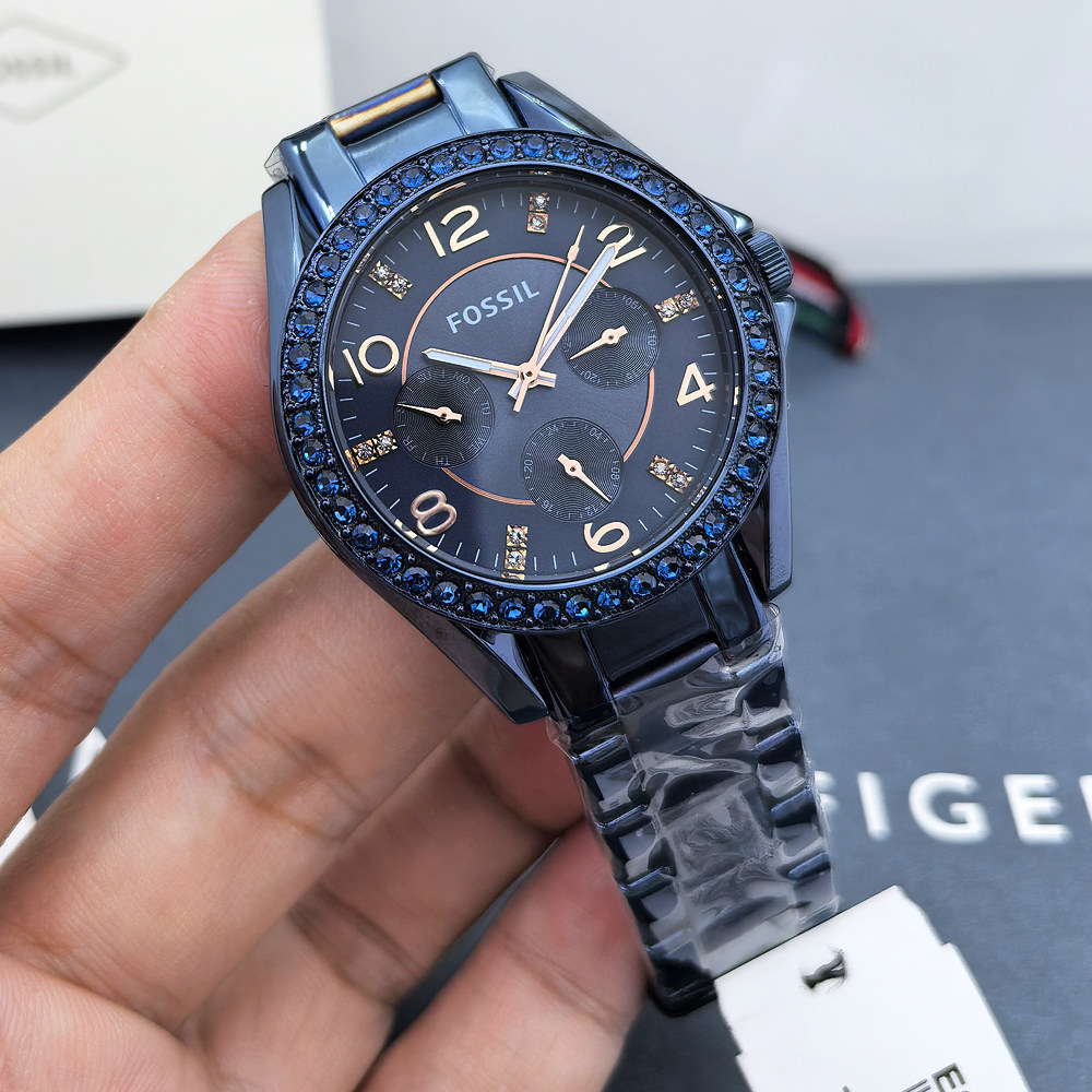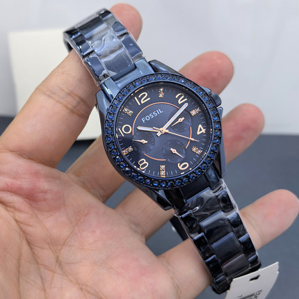 FOSSIL手表不锈钢深蓝色多功能星期 日历商务休闲石英表防水女表