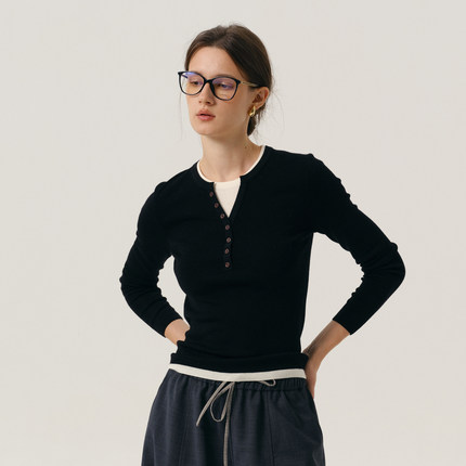 NANCYLILI假两件修身设计感羊毛针织衫圆领上衣打底衫内搭毛衣女