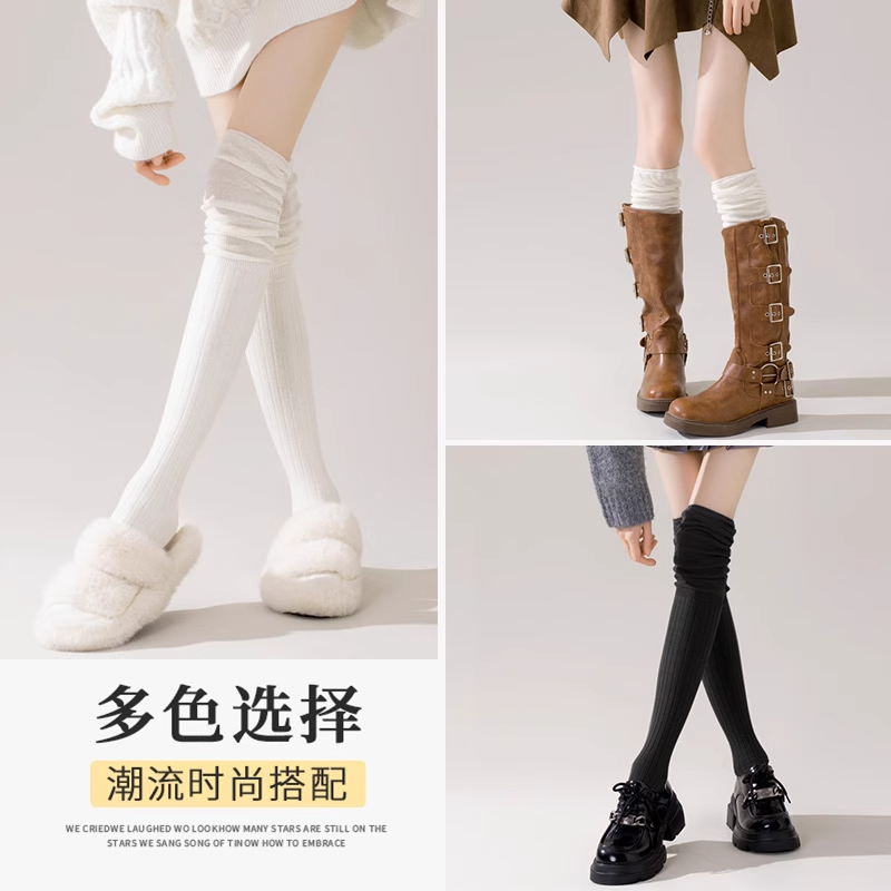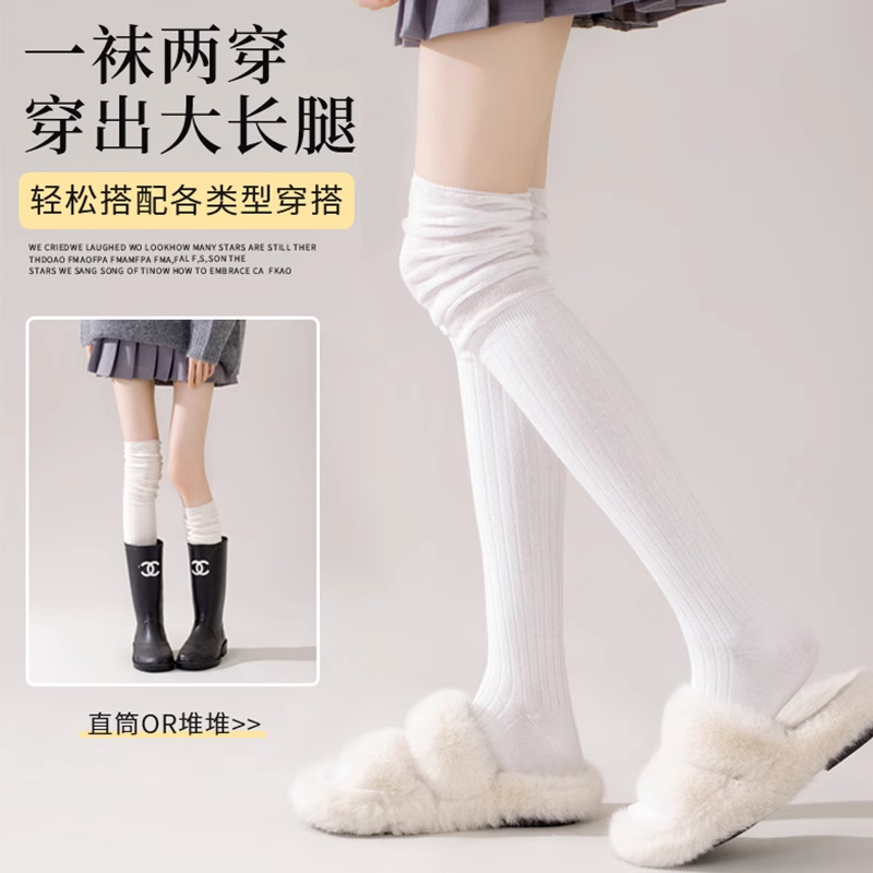 袜子女春秋季纯棉大腿袜白色长筒袜2025新款过膝堆堆袜小腿袜高筒