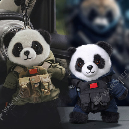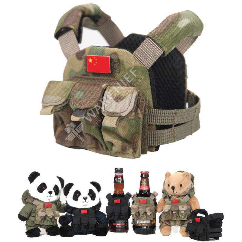 战术风格熊猫迷你战斗小背心军迷小配件挂饰酒瓶玩偶毛绒玩具配饰