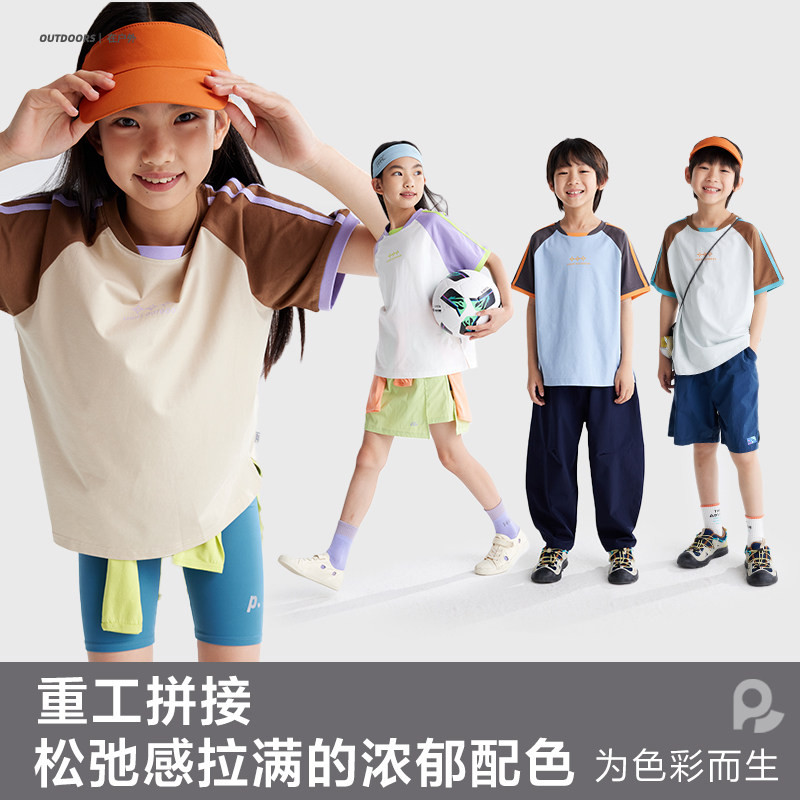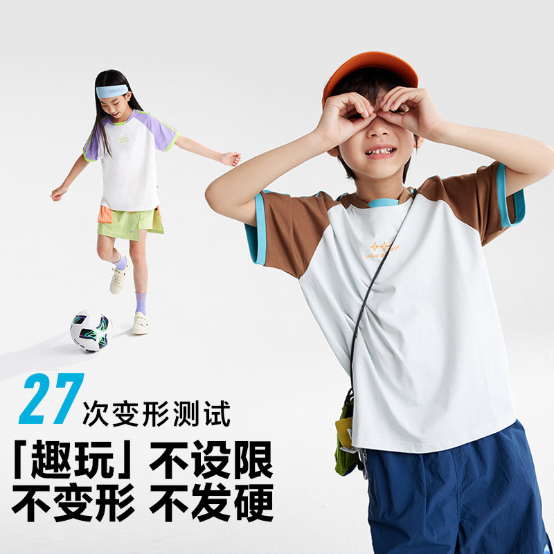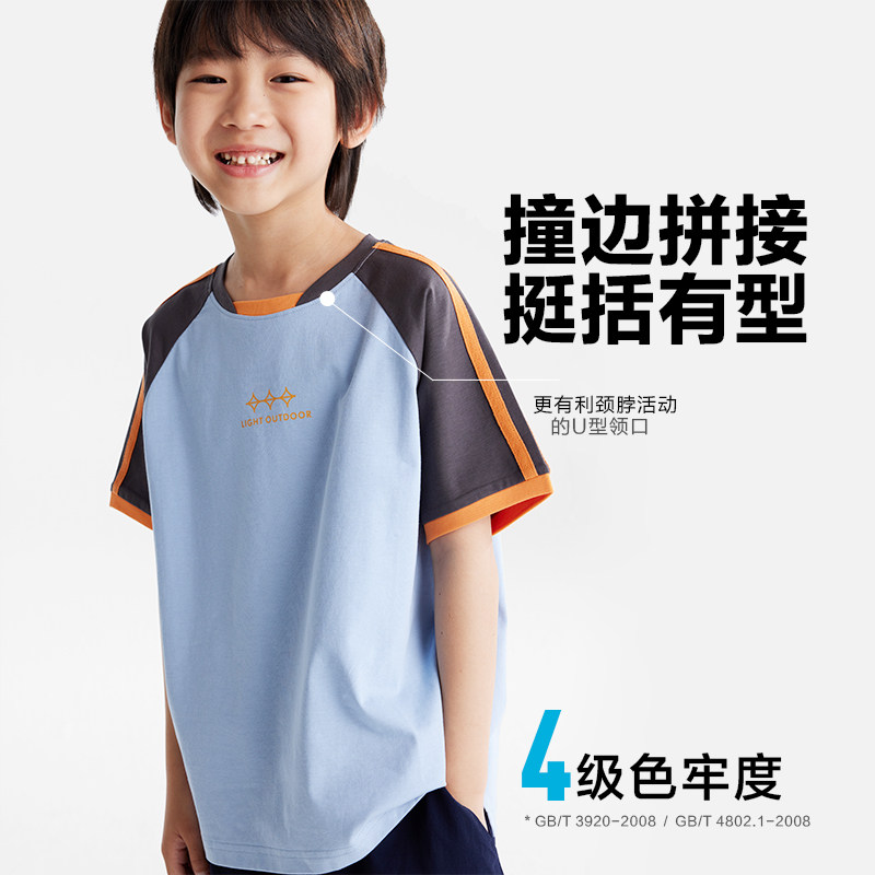 咕噜日记童装儿童撞色T恤2025夏季男女童轻运动短袖中童透气上衣