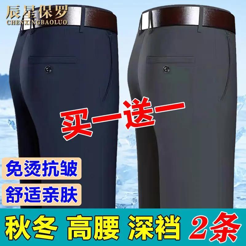 【买一送一】秋冬新款男士休闲西裤中老年弹力高腰直筒厚款裤子t1