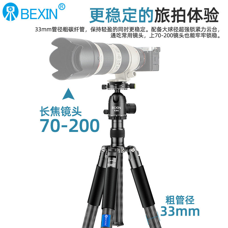 贝欣碳纤维三脚架单反相机摄影摄像适用佳能尼康索尼球形云台支架