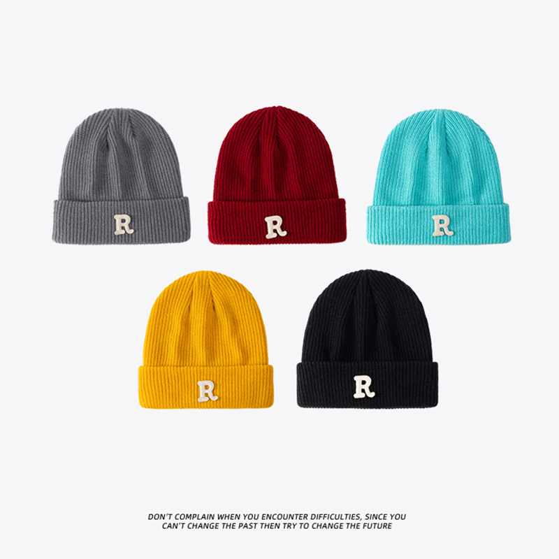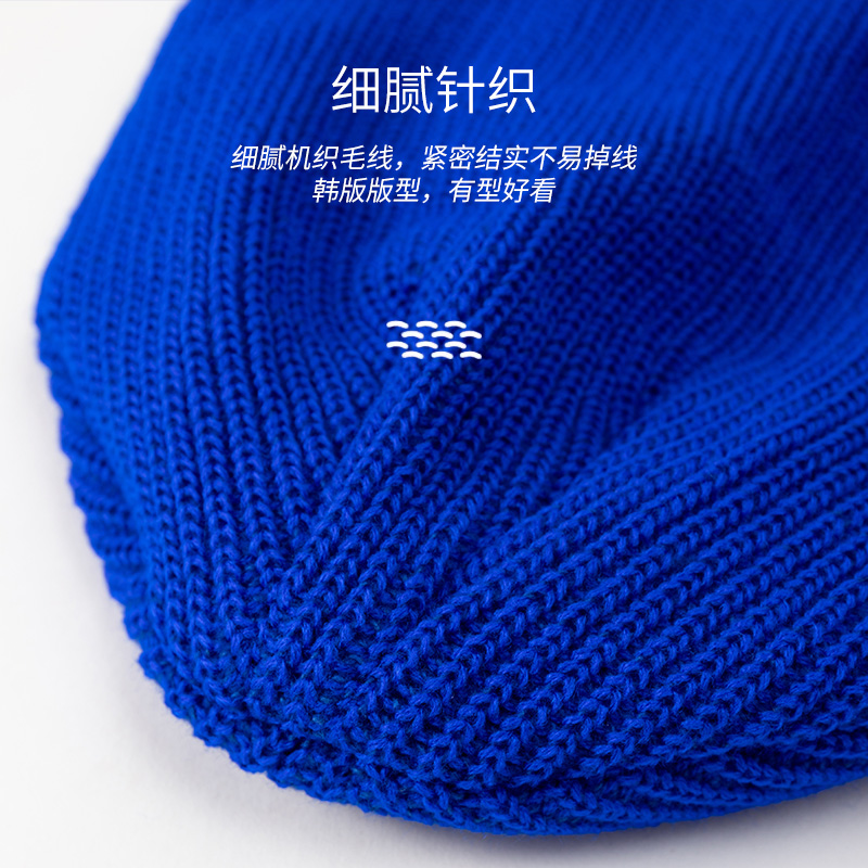 日系潮人字母刺绣毛线帽子女秋冬季保暖护耳百搭蓝色针织帽冷帽男