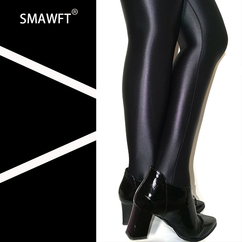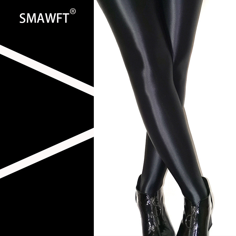 SMAWFT新品外穿薄款氨纶光面打底裤女进口高弹面料光泽九分健美裤