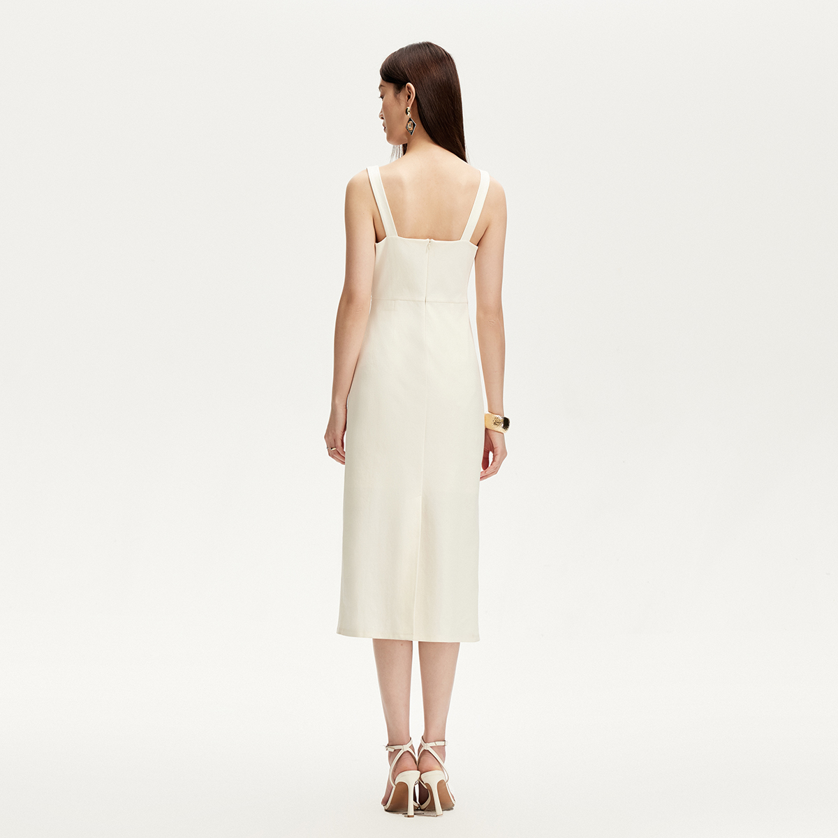 Vero Moda连衣裙2025冬新款含棉收腰修身捏褶设计简约裙