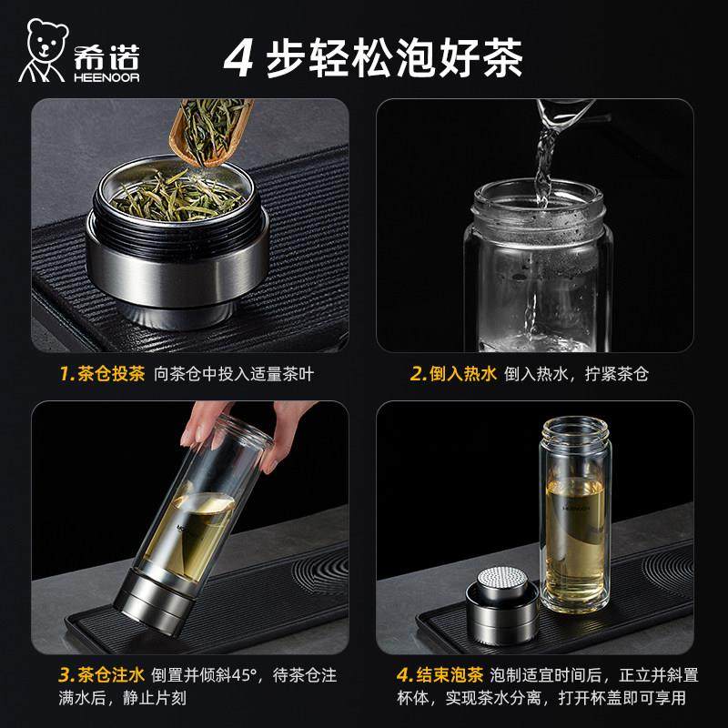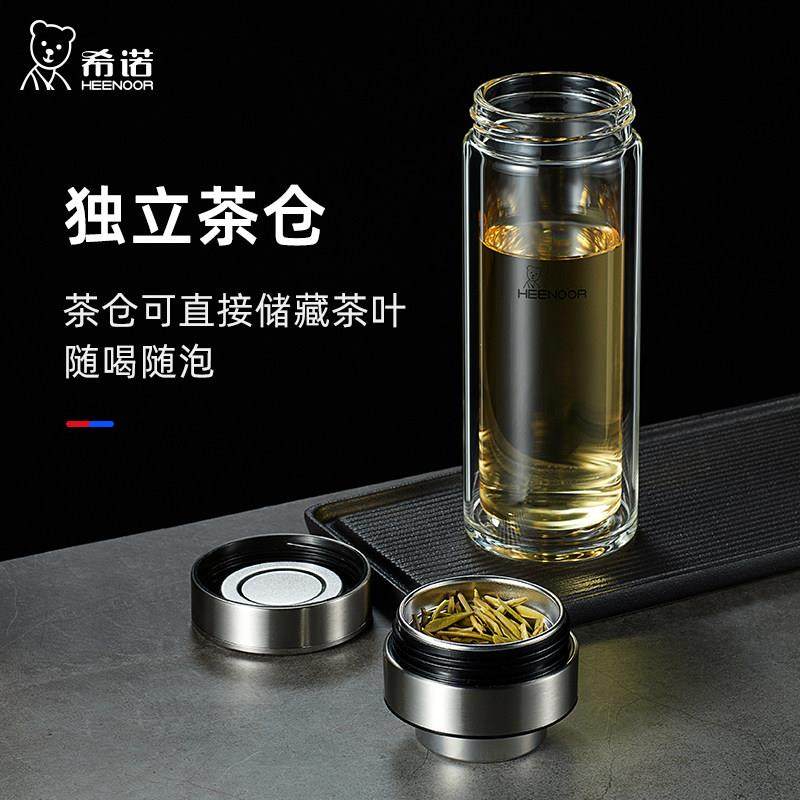 希诺双层茶水分离玻璃杯男士大容量泡茶叶礼盒隔热茶杯高档商务水