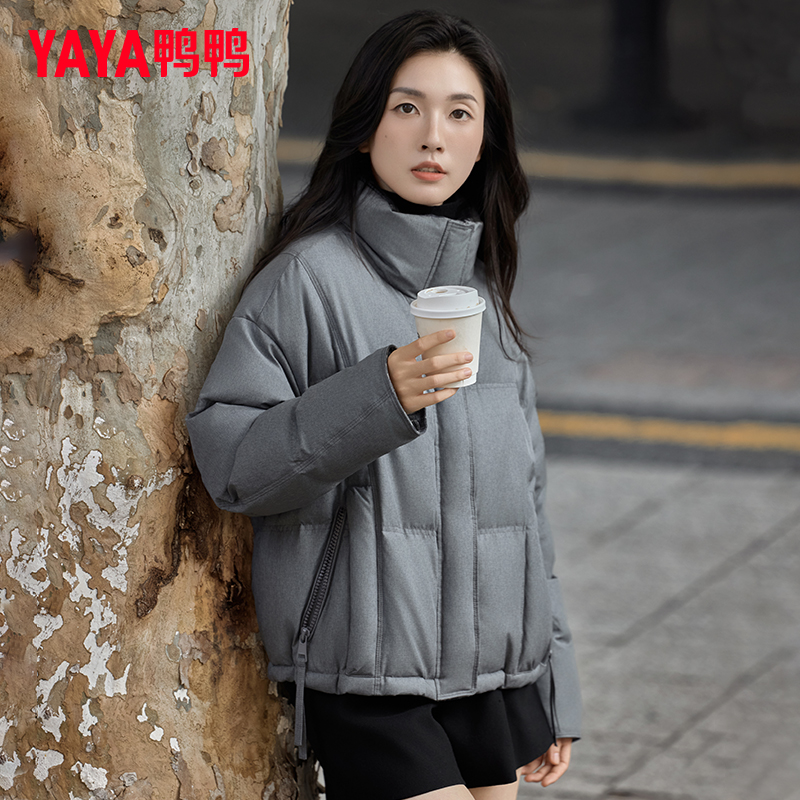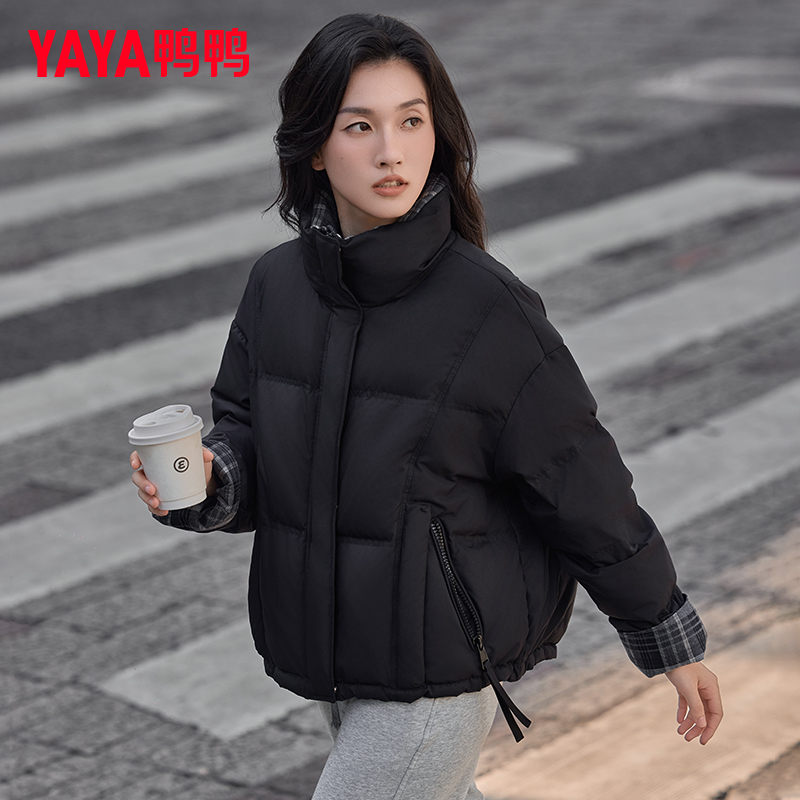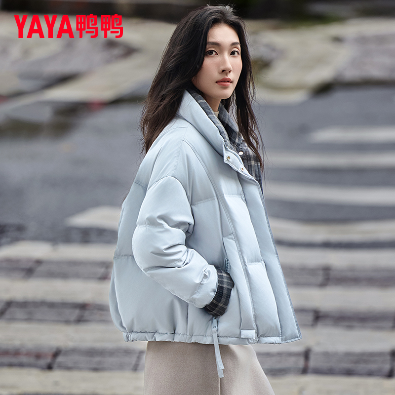 鸭鸭短款羽绒服女士官方2025年秋冬新款宽松时尚百搭保暖拼色外套