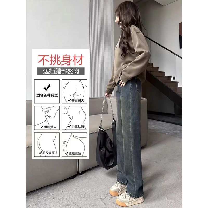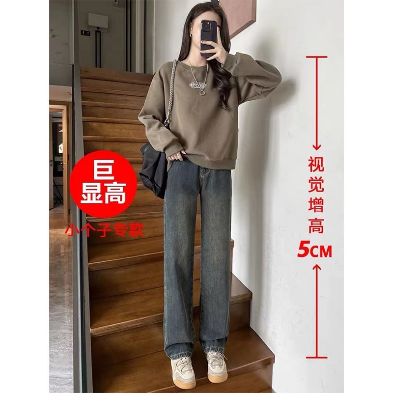 小个子阔腿牛仔裤女九分直筒裤子百搭显高遮肉梨形款修身显瘦裤子