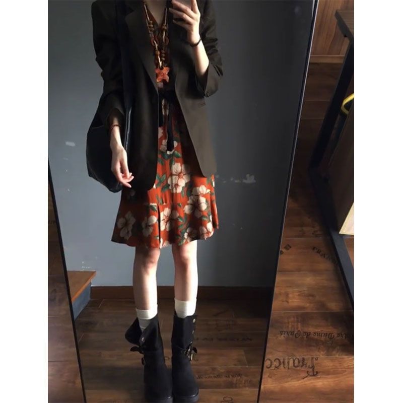 韩系设计感咖色长袖宽松外套套装女夏季新款修身显瘦连衣裙两件套