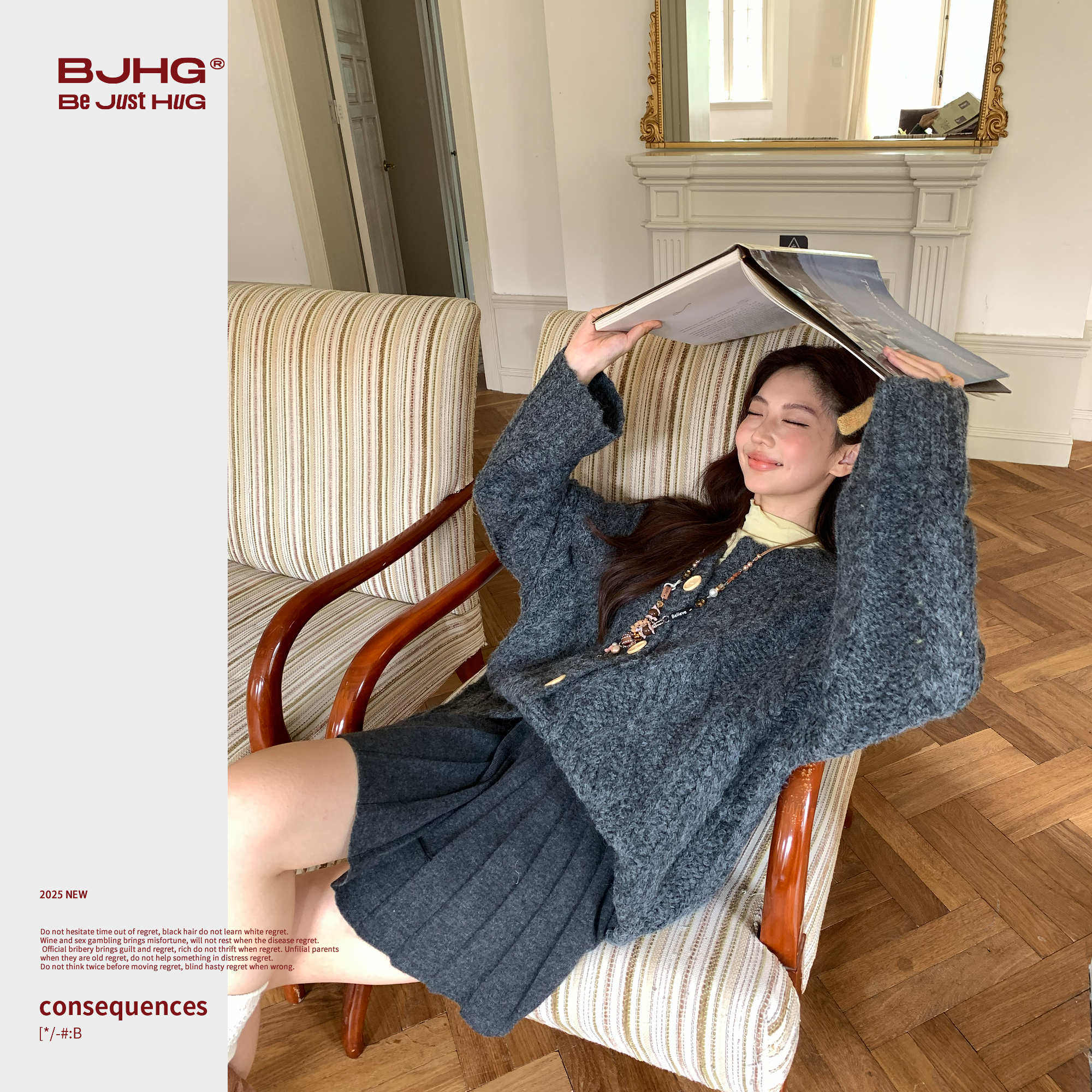 陈赫同款BJHG不计后果毛衣开衫女冬季2025新款复古重磅针织衫外套