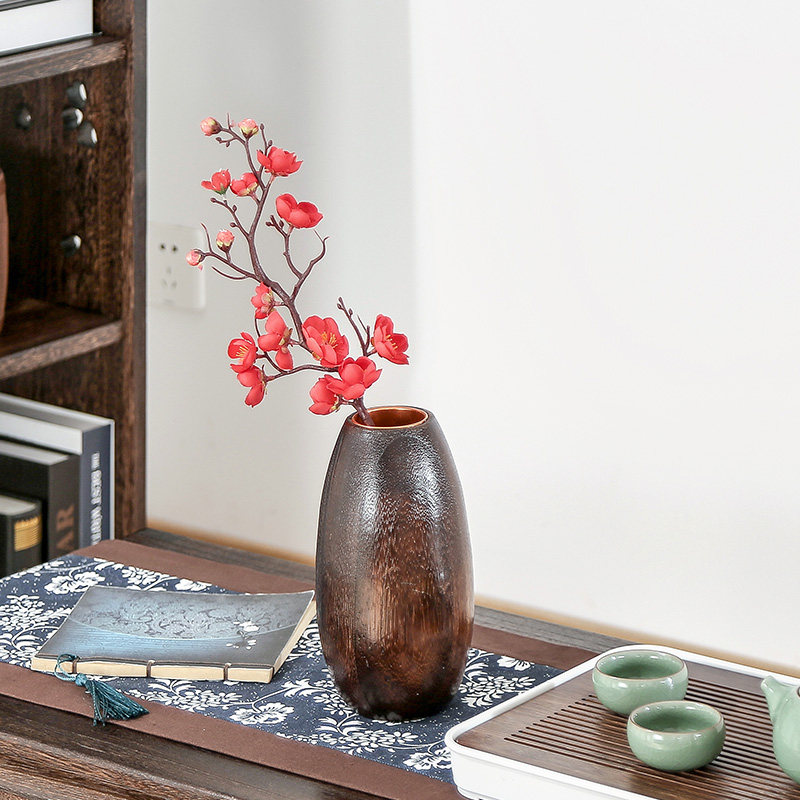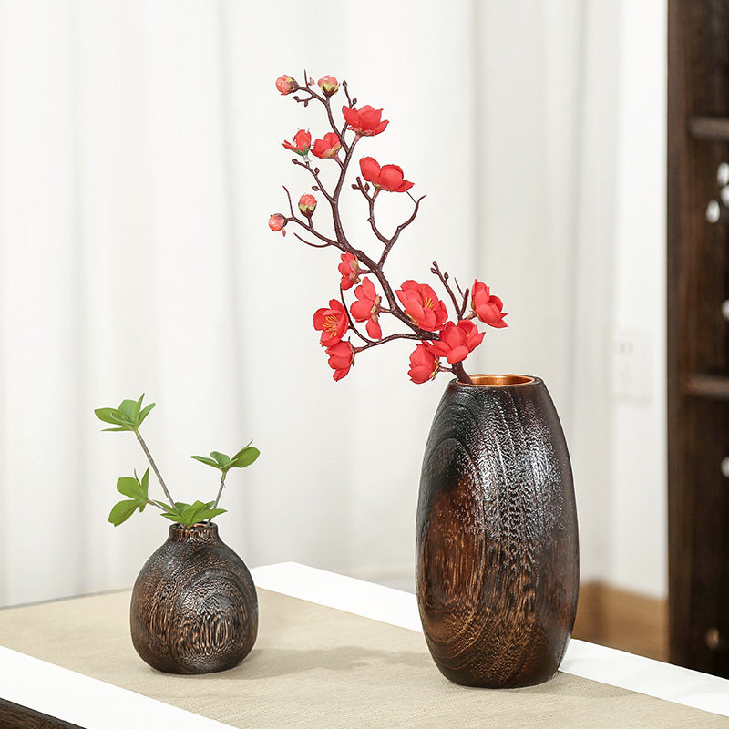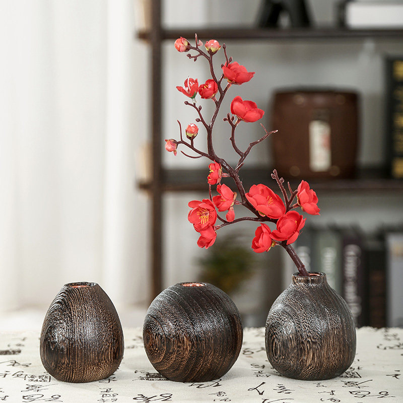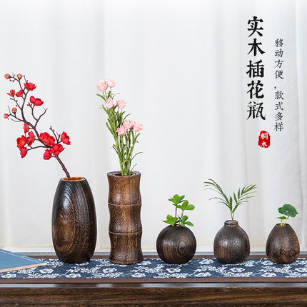 实木古风小花瓶新中式迷你花器茶室装饰禅意摆件复古木质花瓶水培