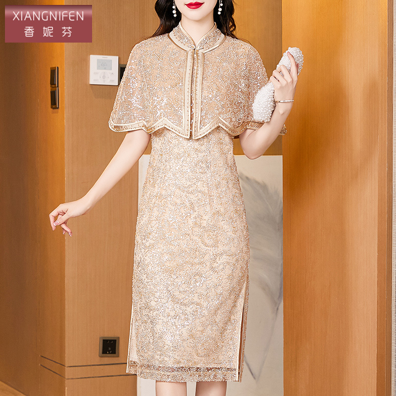 香妮芬洋气减龄喜妈妈婚宴礼服披肩可拆2025新款秋夏喜婆婆宴会装