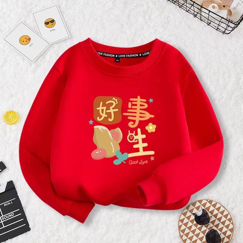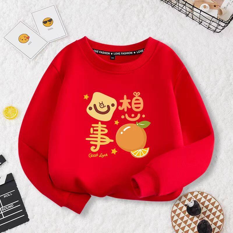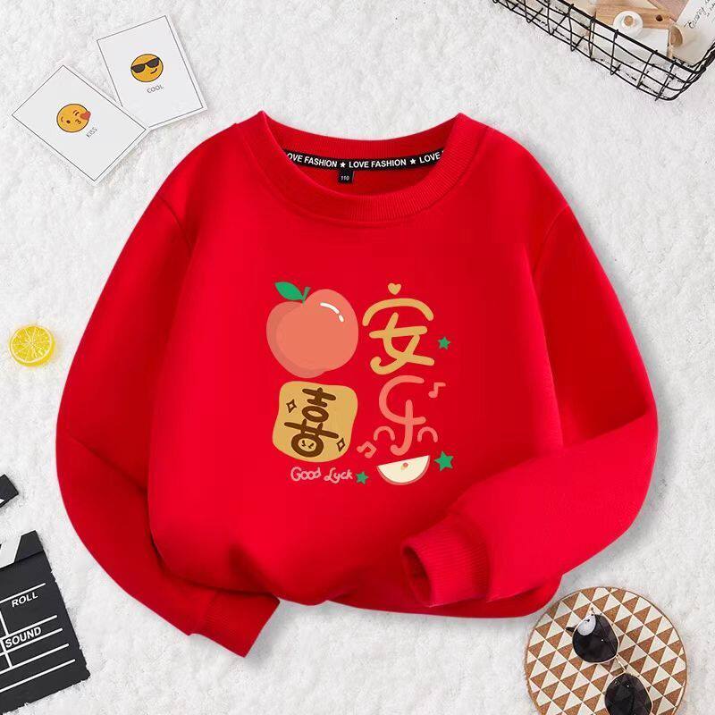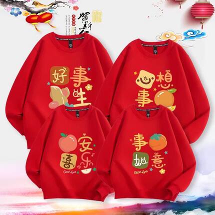 新年衣服亲子装卫衣红色过年春节一家全家福拜年加绒加厚套头上衣