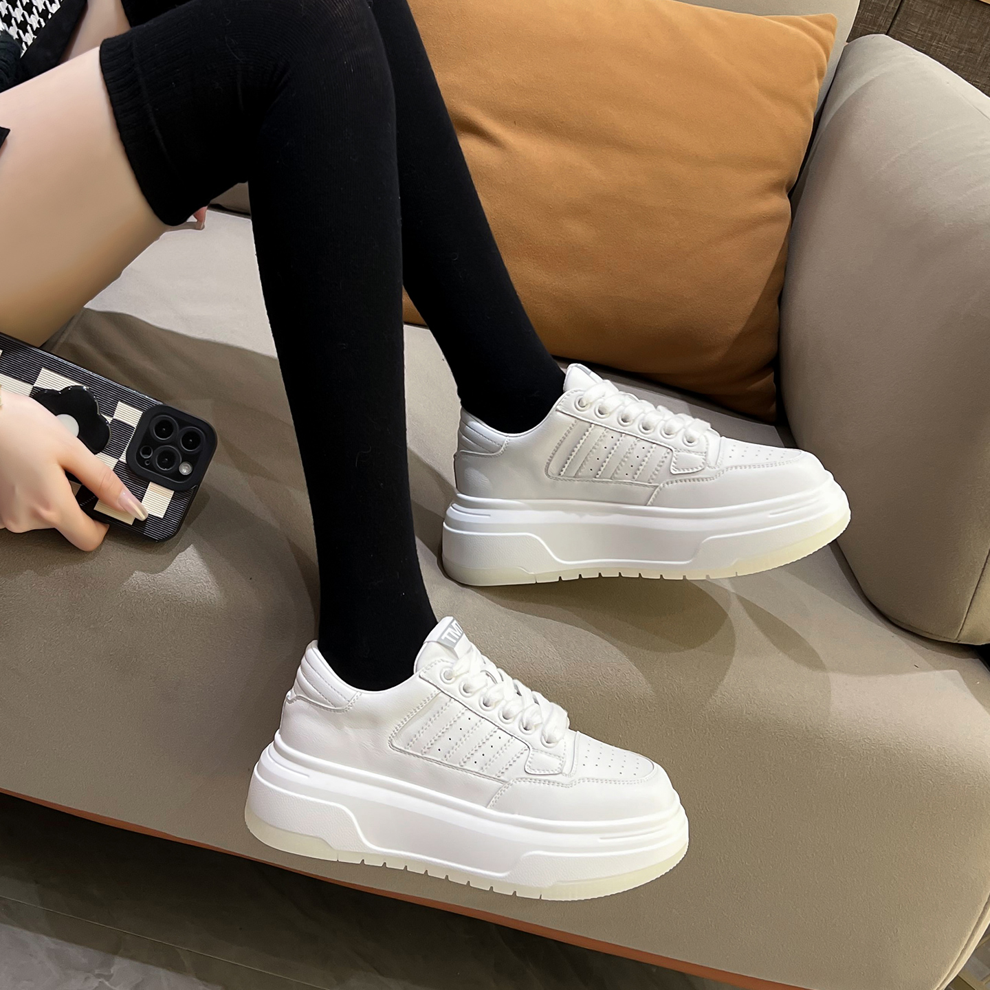 厚底小白鞋2025秋季新款增高女鞋松糕真皮百搭休闲鞋白色运动板鞋