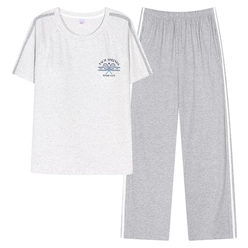 2025年睡衣女士夏季纯棉简约宽松短袖长裤休闲透气可外穿家居服女