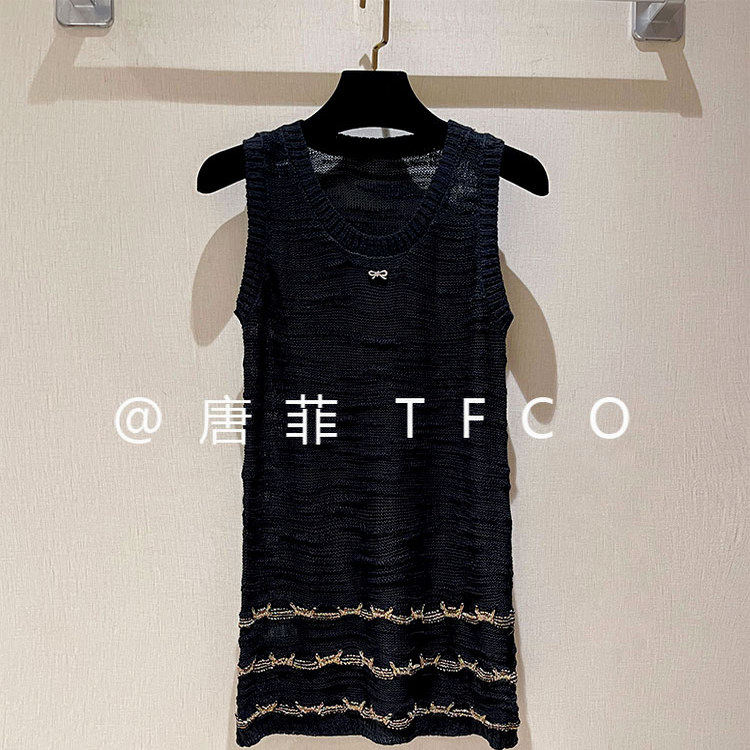 高品质 今年流行的~小香风长款无袖背心 纯色气质夏款针织连衣裙