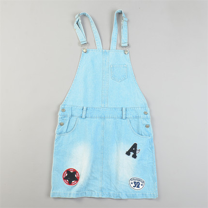 日单纯棉牛仔背带裙L84782夏秋学生减龄少女感刺绣贴布叠穿连衣裙
