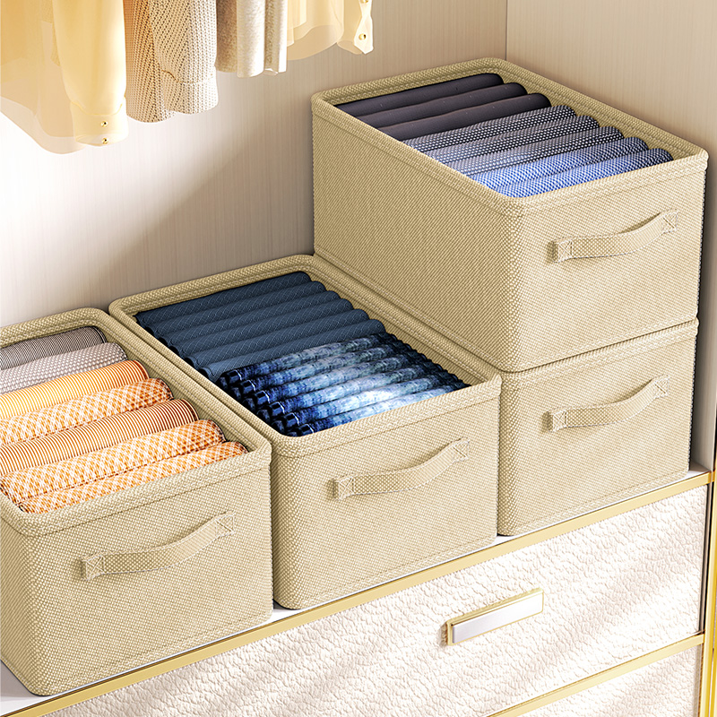 棉麻衣服裤子收纳筐折叠整理盒家用抽屉式装布艺衣物衣柜分层神器