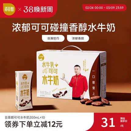 百菲酪可可水牛奶200ml*10盒儿童学生营养早餐牛奶风味乳调制乳