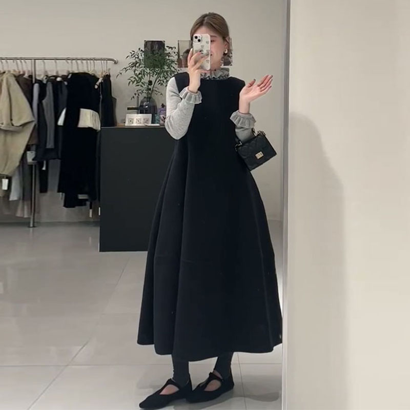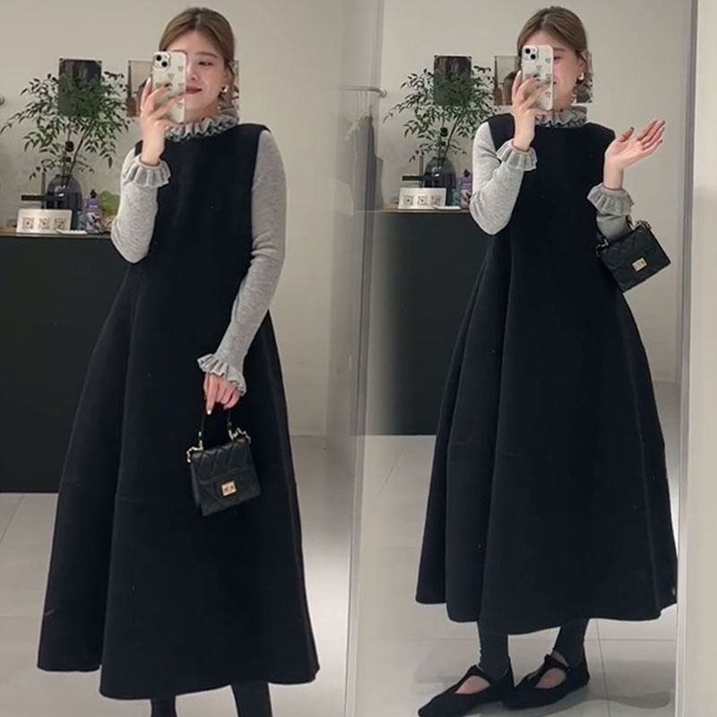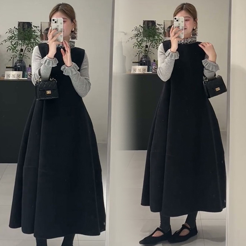 孕妇装秋冬季套装2025新款公主风打底衫高级叠穿毛呢背心裙两件套