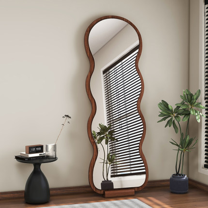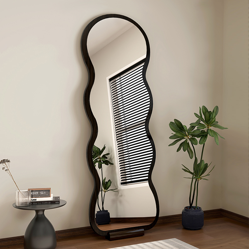 全身镜家用落地镜轻奢高级感穿衣镜波浪异形壁挂女生卧室试衣镜子