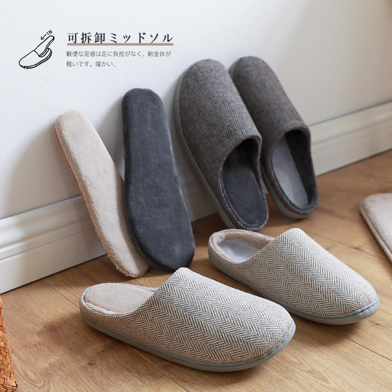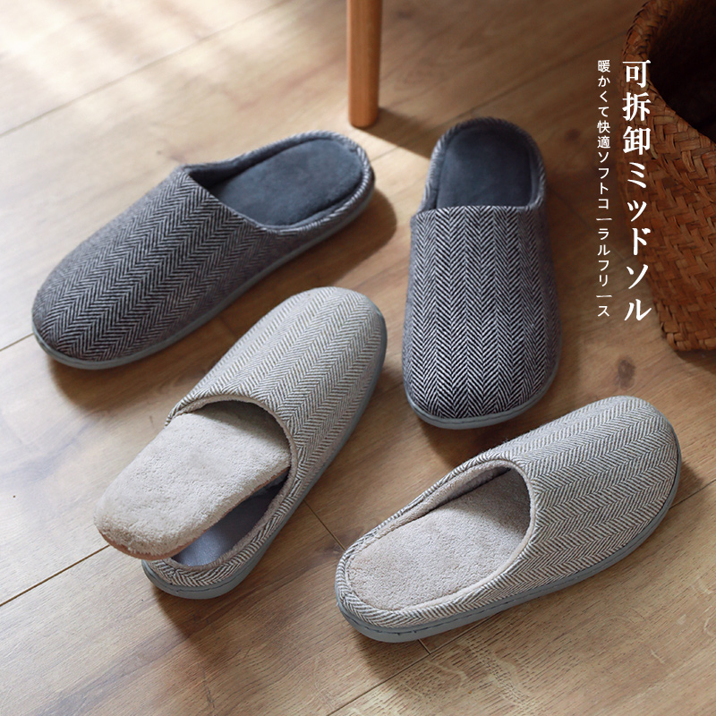 日式风冬季可拆卸厚底按摩棉拖鞋