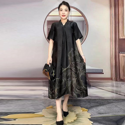 2025夏季新款国风复古香云纱连衣裙女装宽松高档桑蚕丝改良旗袍裙